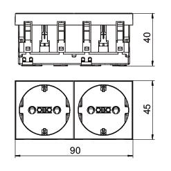 Product descriptionPower socket, double 0°, with increased touch protection with screwless terminals, 2-pin, 16 A, 250 V~, with connection terminals to IEC 60884-1.
