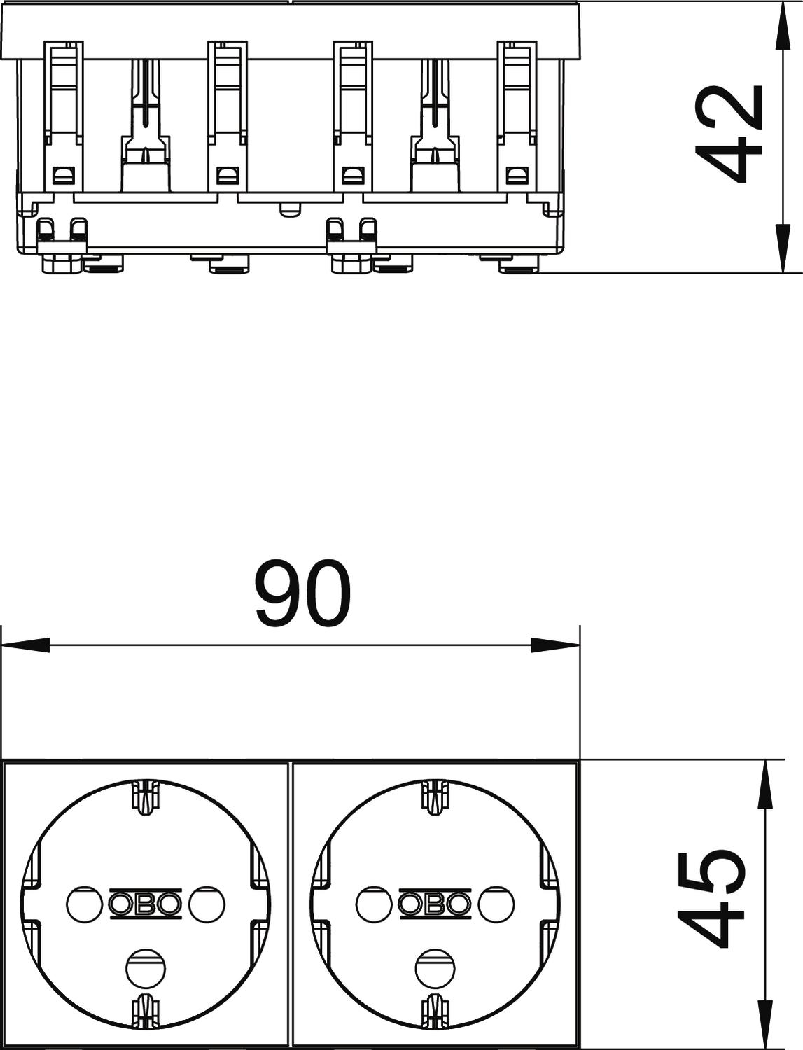 For installation in Rapid 45 trunking, device installation trunking, service poles, underfloor systems and desk boxes.