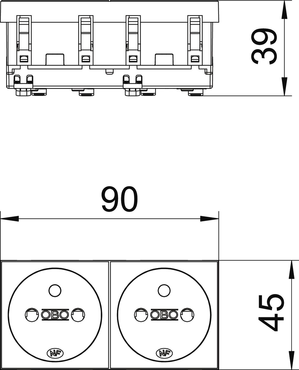 For installation in Rapid 45 trunking, device installation trunking, service poles, underfloor systems and desk boxes.
