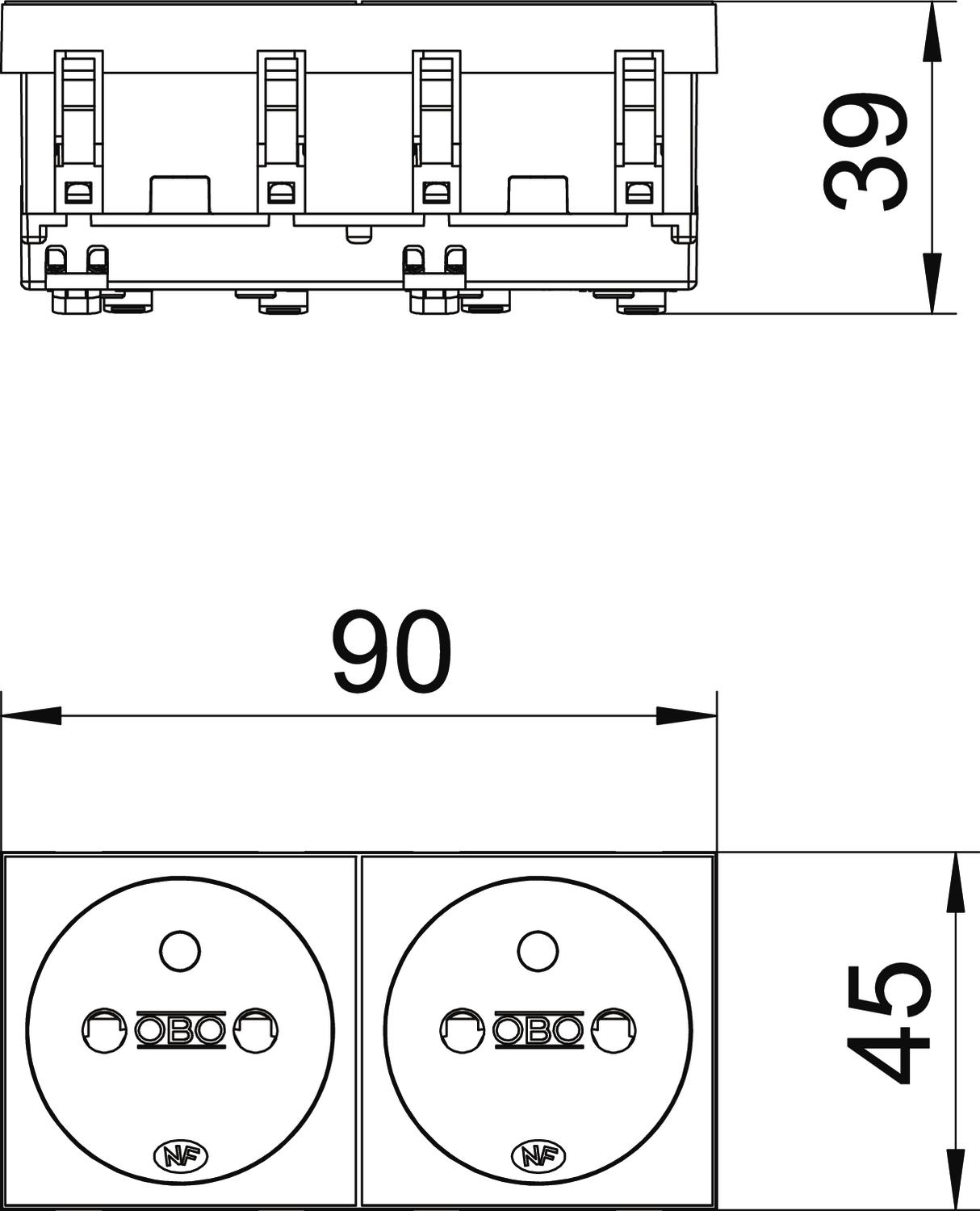 Approvals VDE Closable no CO2 Footprint (GWP) Cradle-to-Gate 0,3685 kg CO2e / 1 Piece Coding no Colour Pure orange; RAL 2004 Connection type Screwless terminal Cover Central plate Depth 39 mm Dimension 250V, 10/16A Ejection mechanism no Error current protection no Fastening type Lock For more difficult conditions (according to VDE) no Halogen-free yes Height 45 mm Hinged cover no increased touch protection yes Insulated installation no Labelling panel no Material Polycarbonate Mounting type Device installation duct Nominal current 16 A Nominal voltage 250 V Number of poles 2 Number of units 2 Operating temperature, max. 40 °C Operating temperature, min. -5 °C Printed label/coding Without printing Protection rating Other Rotated central insert no Socket angle 0° Socket version NF Special power supply Without special power supply Surface version Matt Surge protection no Transparent no Version for Double 0° Warning light no Width 90 mm With fine-wire fuse no With functional lighting no With on/off switch no With orientation lighting no - All types