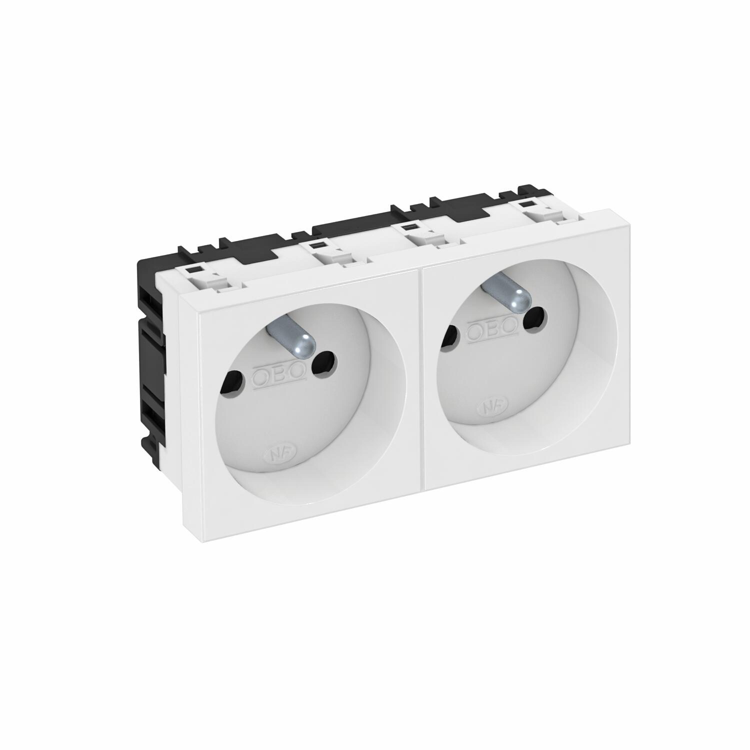 Product descriptionSocket with earthing pin, double 0°, with increased touch protection, with screwless terminals, 2-pin, 16 A, 250 V~, with connection terminals to IEC 60884-1.