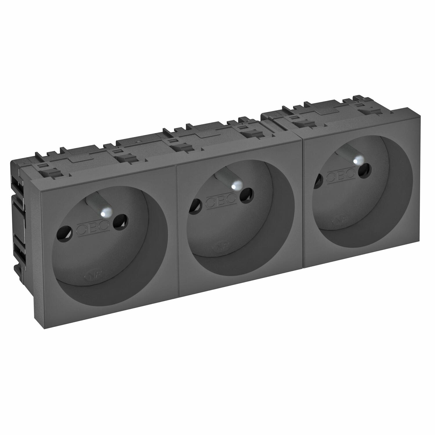 Product descriptionSocket with earthing pin, triple 0°, with increased touch protection, with screwless terminals, 2-pin, 16 A, 250 V~, with connection terminals to IEC 60884-1.
