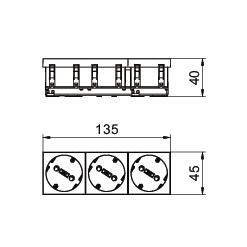 Product descriptionProtective contact socket triple 33°, with increased touch protection, with screwless terminals, 2-pin, 16 A, 250 V~, with connection terminals to IEC 60884-1.