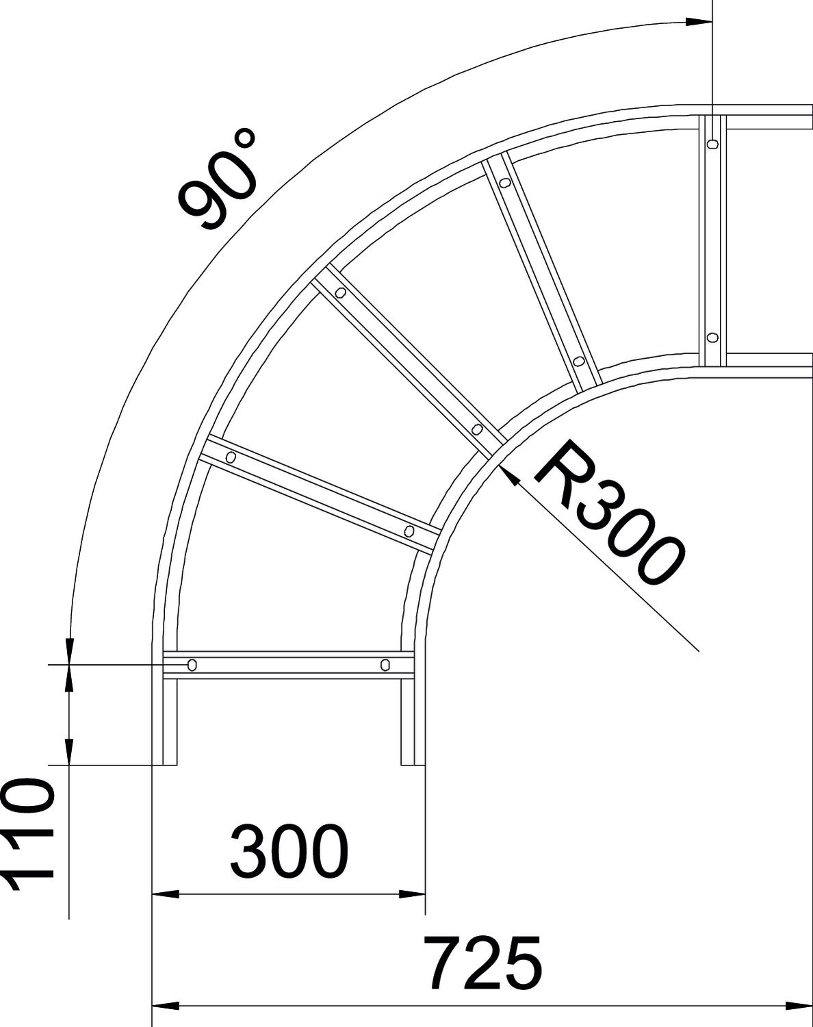 Product description90° bend, horizontal, with welded rung for all cable ladder types of 110 mm side height.