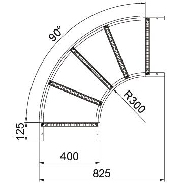 Product description90° bend, horizontal, with welded rung for all cable ladder types of 60 mm side height.