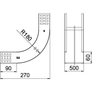 Product description90° rising vertical bend, for all cable tray types of 60 mm side height.