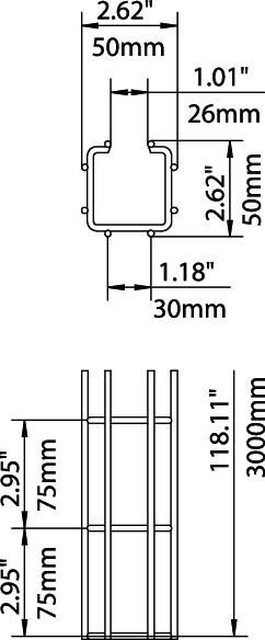 CO2 Footprint (GWP) Cradle-to-Gate 2,7968 kg CO2e / 1 Meter Colour zinc Connector version Without connectors Dimension 50x50x3000 Dimension A 26 mm Dimension B 67 mm Dimension H 67 mm Dimension l1 30 mm Height 1,97 in Height 50 mm Integrated partition Without Length 3000 mm Load test type according to IEC 61537 Type II Maintain electrical functions no Material Steel Profile shape C-shaped Rustproof steel, pickled no Support spacing 1.0 m 0,95 kN/m Support spacing 1.5 m 0,6 kN/m Support spacing 2.0 m 0,35 kN/m Surface Hot-dip galvanised Type of connector, cable support system Screwed Usable cross-section 13 cm² Usable cross-section 1300 mm² Wide-span version no Width 1,97 in Width 50 mm Wire diameter 4,5 mm - All types