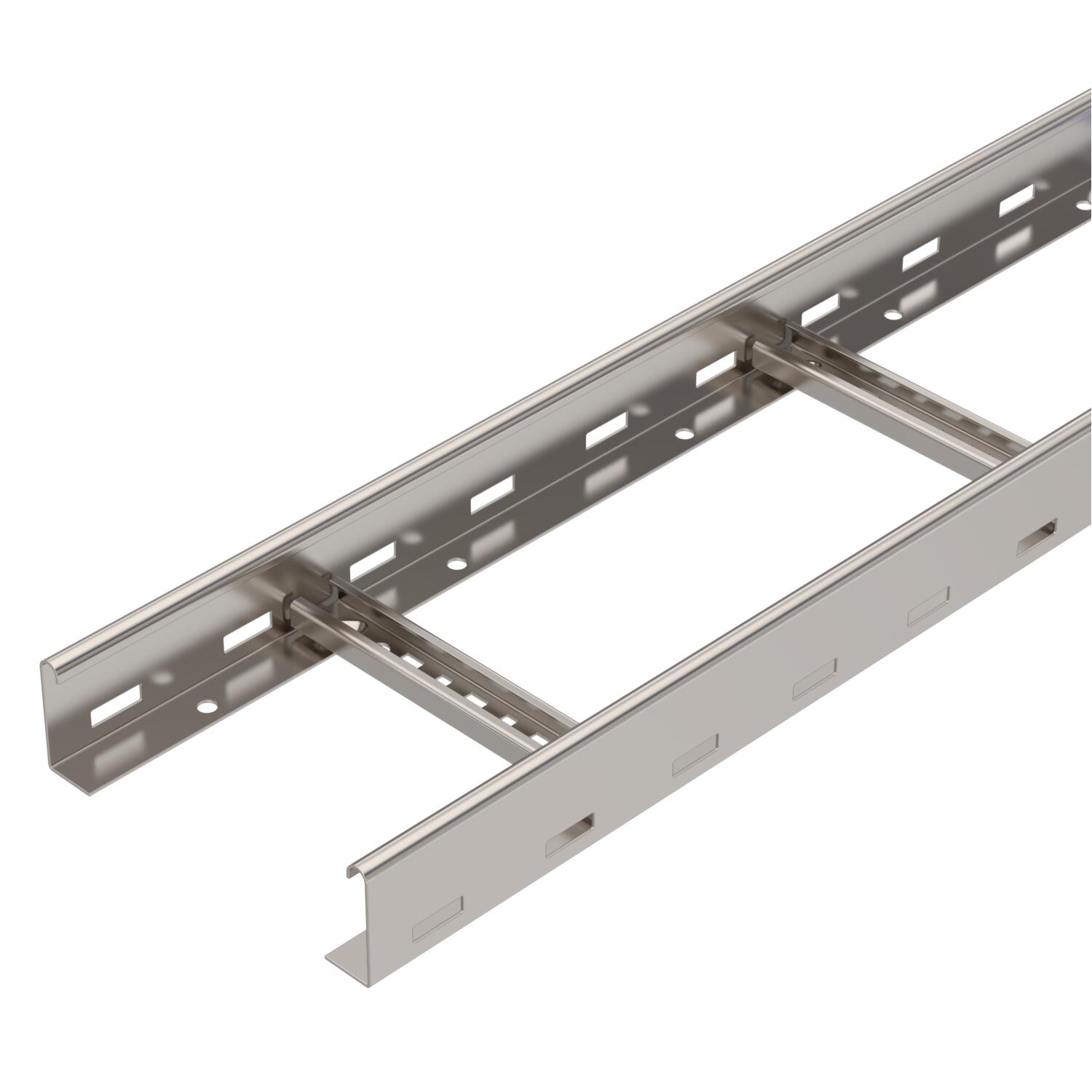 Product descriptionCable ladder with 60 mm side height with welded C30 profile rungs which are open in an upwards direction. Rolled side rail for reinforcement and as edge protection. Fastening to the bracket takes place using clamps, type LKS 40. The slot dimension of the frame is 16.5 mm and the appropriate clamp clip is type 2056.