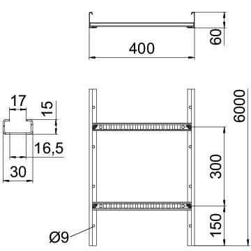 Product descriptionCable ladder with 60 mm side height with welded C30 profile rungs which are open in an upwards direction. Rolled side rail for reinforcement and as edge protection. Fastening to the bracket takes place using clamps, type LKS 40. The slot dimension of the frame is 16.5 mm and the appropriate clamp clip is type 2056.