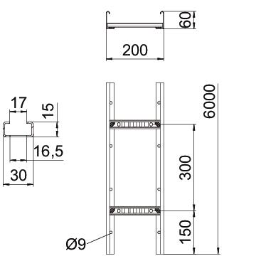 Product descriptionCable ladder with a 60 mm side height with welded C30 profile rungs which are open in an upwards direction. Rolled side rail for reinforcement and as edge protection. Fastening to the bracket takes place using hold-down clamps, type LKS 40. The slot dimension of the rung is 16.5 mm and the appropriate clamp clip is type 2056.