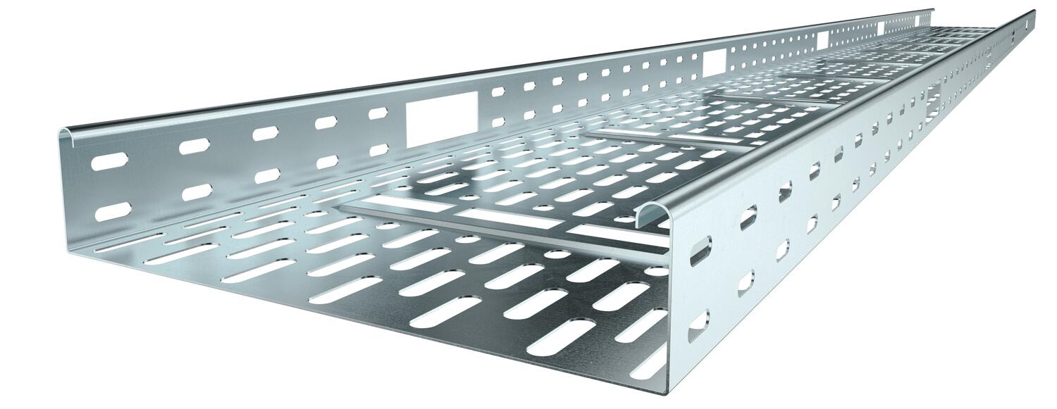 Permeable cable tray system to VdS guideline 2092 with 30% hole surface for use under sprinkler systems.