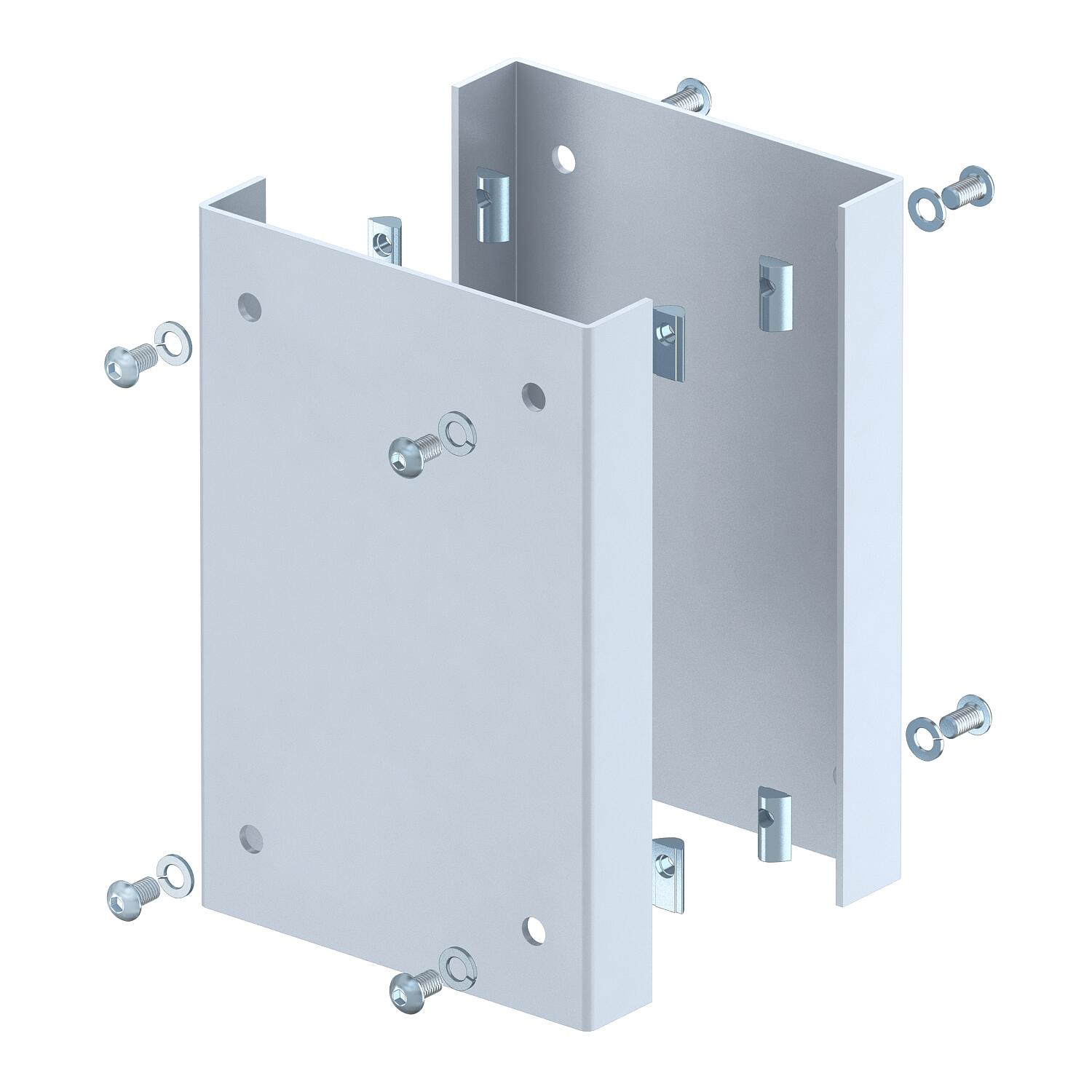 Product descriptionCollision guard as mechanical protection of the ISS industrial pole in the bottom area. The scope of delivery comprises of two U-shaped protection profiles made from 3 mm sheet steel and eight fastening screws with slot nuts to install on the pole profile.