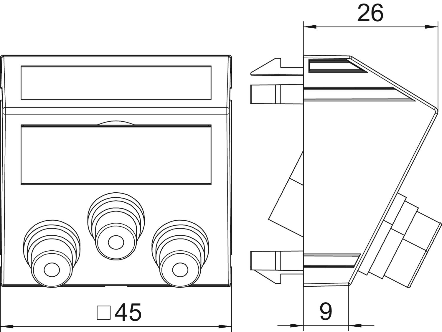 Product descriptionMultimedia support with three cinch connection sockets for component video, slanting cable outlet, with labelling panel, three cinch couplings (RCA), socket-socket version, colour coding red/green/blue. Support plate with locking fastening, suitable for horizontal and vertical installation in the system environment.