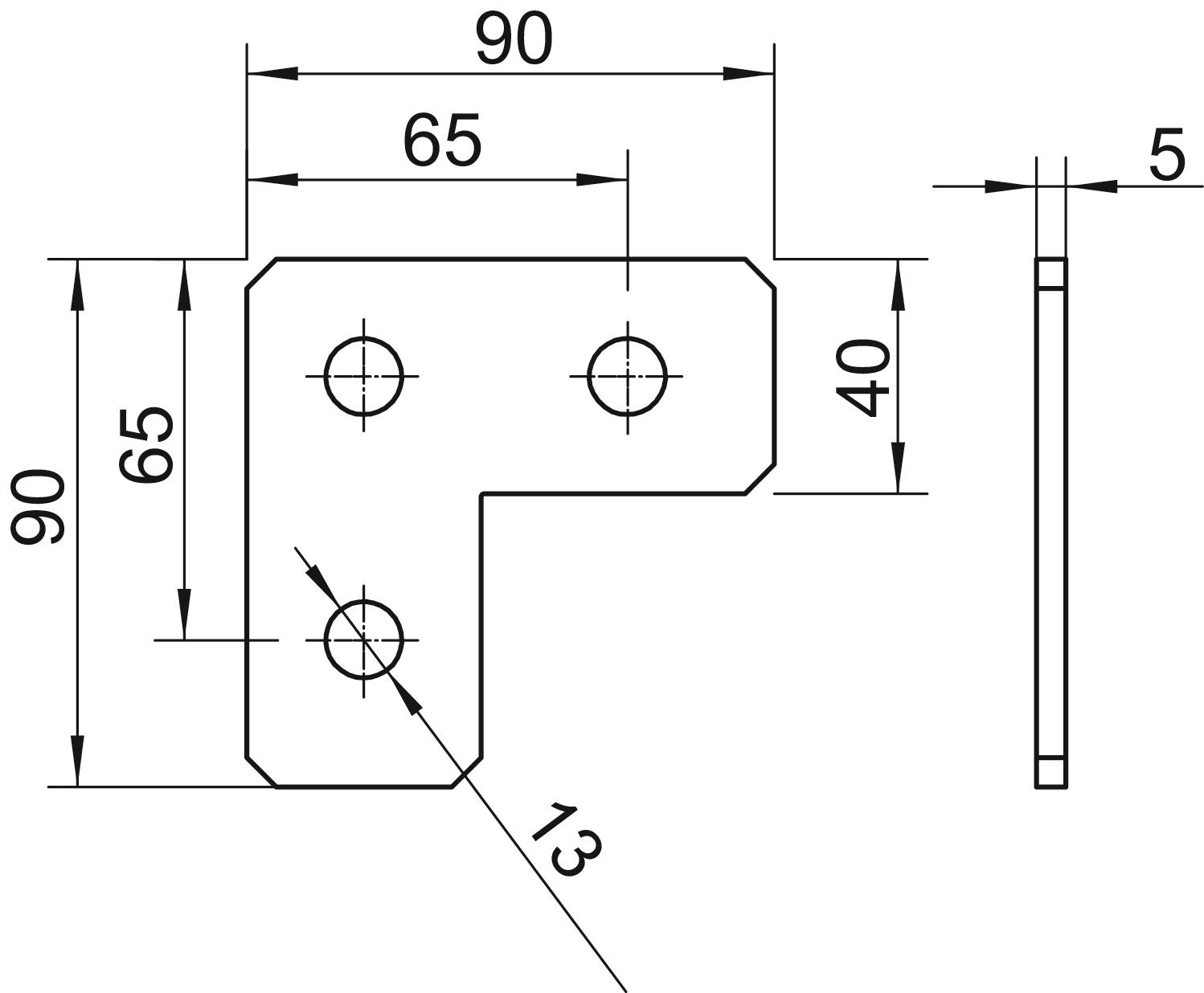 CO2 Footprint (GWP) Cradle-to-Gate 0,782 kg CO2e / 1 Piece Dimension 90x90x40x5 Height 5 mm Hole size 13 Length 90 mm Material Steel Material thickness 5 mm Rustproof steel, pickled no Suitable for profile shapes C profile Surface Hot-dip galvanised Version for With continuous perforation 13 mm Width 40 mm With screw accessories no - All types