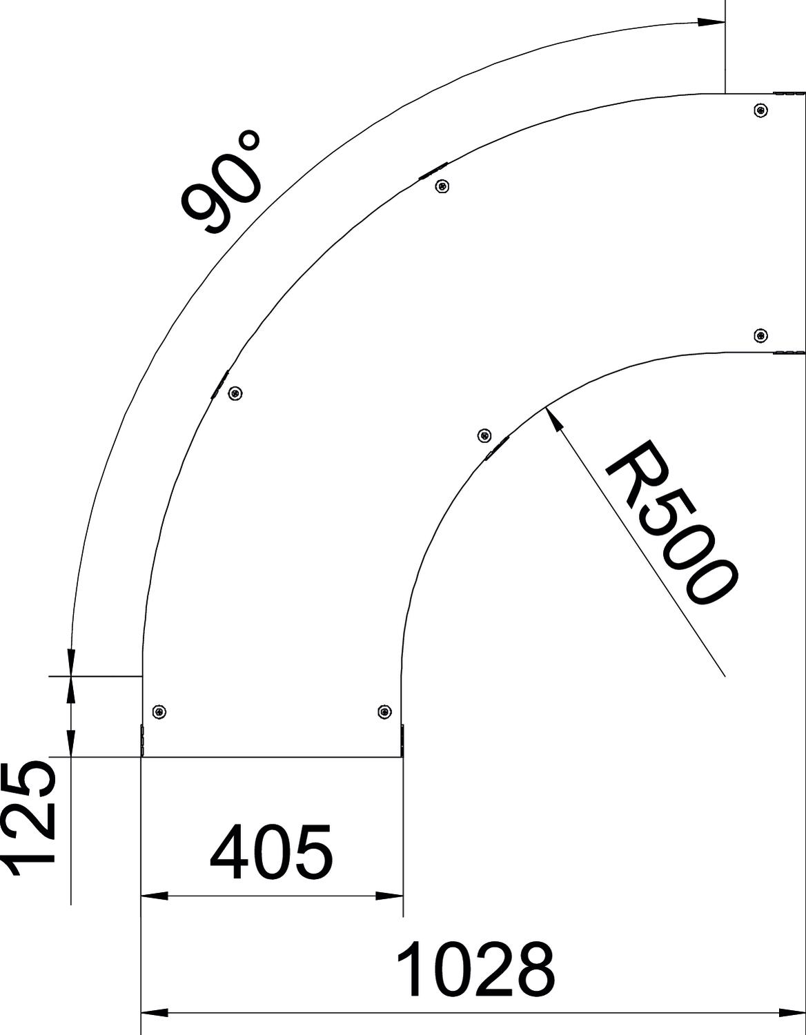 Product descriptionCover with turn buckles for covering 90° cable ladder bends.