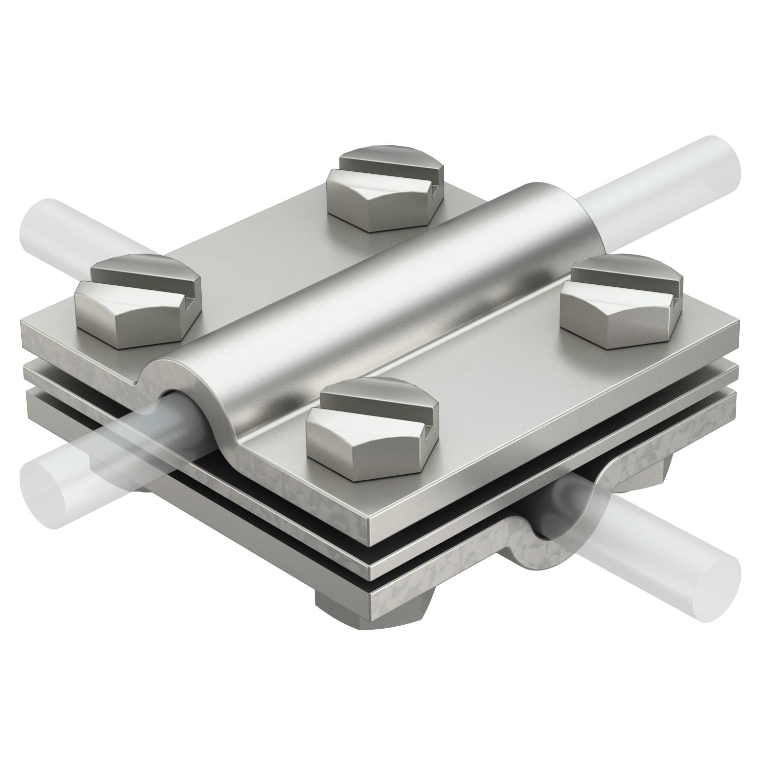 CO2 Footprint (GWP) Cradle-to-Gate 1,4828 kg CO2e / 1 Piece Dimension 8-10mm Fit Rd 8-10 mm Intermediate plate yes Lightning current carrying capacity H/100 kA Material Stainless steel 1.4401 Suitable for connection Round conductor Rd 8–10 / Rd 8–10 Type of connector Cross-connectors Type of fastening screw Hexagonal bolt - All types