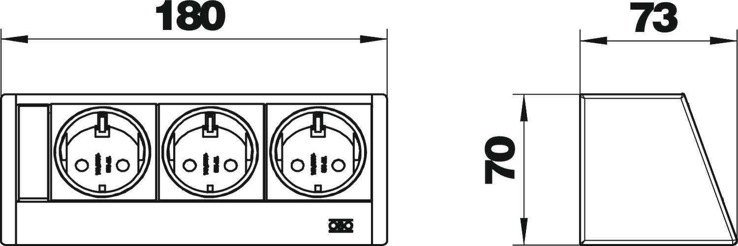 Colour aluminium Extendable no Foldable no Height 70 mm Length 180 mm Length of the supply cable 3 m Material Aluminium Number of SCHUKO sockets 3 Surge protection no Version for Housing, silver anodised - All types