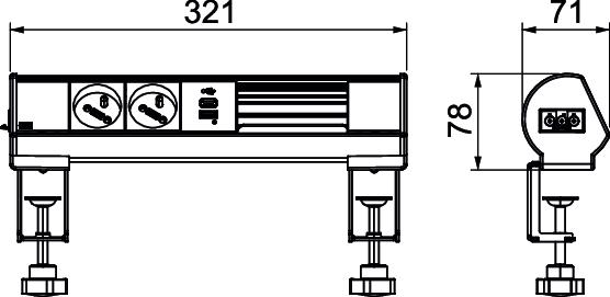 Product descriptionReady-for-connection Deskbox DBL for the direct supply of workstations with power, communications and data technology connections. With a Wieland GST18® connector and cable outlet at the left side of the profile. Toolless mounting with 2 fastening clamps for tabletop thicknesses of 8 to 40 mm and 40 to 70 mm. The Deskbox is equipped with 2 black NF sockets and a 18W USB A+C USB Charger. In addition, the Deskbox has space for retroinstallation of 4 communications and data technology Keystone modules.