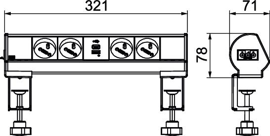 Product descriptionReady-for-connection Deskbox DBL for the direct supply of workstations with power. With a Wieland GST18® connector and cable outlet at the left side of the profile. Toolless mounting with 2 fastening clamps for tabletop thicknesses of 8 to 40 mm and 40 to 70 mm. The Deskbox is equipped with 4 black NF sockets and a 18W USB A+C USB Charger.