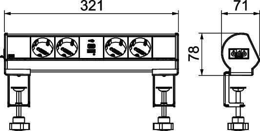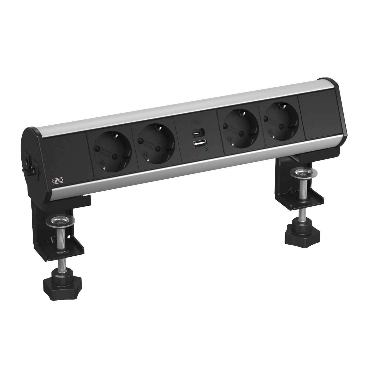 Product descriptionReady-for-connection Deskbox DBL for the direct supply of workstations with power. With a Wieland GST18® connector and cable outlet at the left side of the profile. Toolless mounting with 2 fastening clamps for tabletop thicknesses of 8 to 40 mm and 40 to 70 mm. The Deskbox is equipped with 4 black protective contact sockets in 33° connection direction and a 18W USB A+C Charger.
