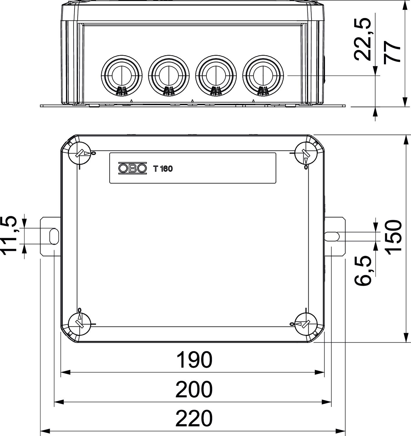 Clear internal dimensions 176x135x67 mm CO2 Footprint (GWP) Cradle-to-Gate 2,4604 kg CO2e / 1 Piece Colour Pastel orange; RAL 2003 Cover Not transparent Cover fastening Screwed Dimension 190x150x77 Dimension B 150 mm Dimension H 77 mm Dimension L 190 mm Dimension L1 200 mm Dimension L2 220 mm Double terminals 2 Entry from rear no Equipment Terminal Expandable no Explosion-tested version no For Ex zone Without For Ex zone dust Without For Ex zone gas Without Halogen-free yes Height 77 mm Impact-resistant no Length 190 mm Maintain electrical functions E 90 Material Polypropylene Measured insulation voltage Vi 690 V No. of entries 12 Nominal cross-section, max. 10 mm² Nominal cross-section, min. 4 mm² Nominal voltage 660 V Number of terminals 6 Protection rating IP66 Protective terminal 1 Sealable no Shape Rectangular Single terminals 3 Transparent lid no Type of housing penetration Cuttable stepped membrane Weatherproof no Width 150 mm with lid yes With screening no - All types