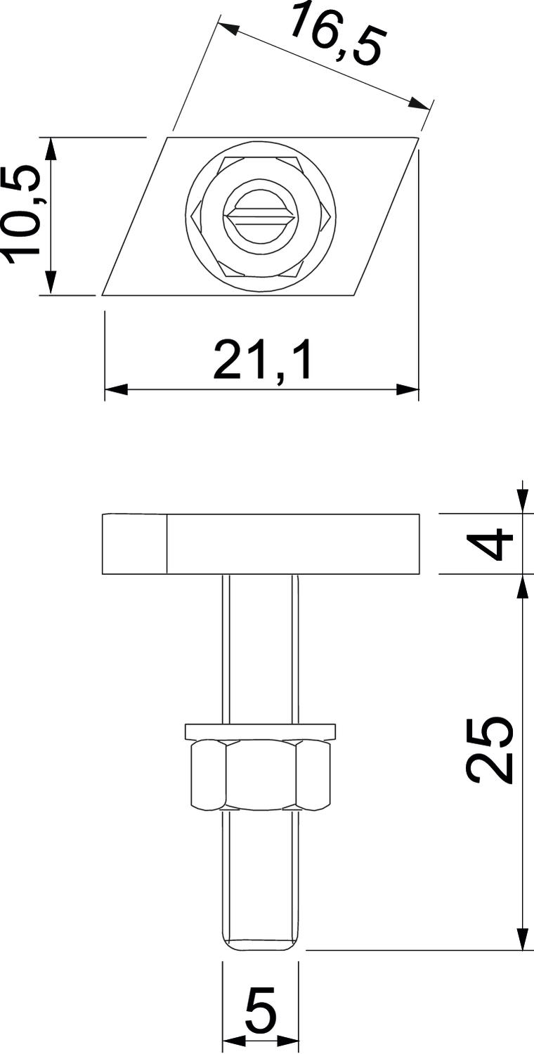 CO2 Footprint (GWP) Cradle-to-Gate 0,029 kg CO2e / 1 Piece Dimension M5x25mm Dimension L 25 mm Height 4 mm Length 21,1 mm Material Steel Suitable for mounting rail yes Surface Zinc slat Thread M 5 x 25mm Thread metric 5 Width 10,5 mm - All types