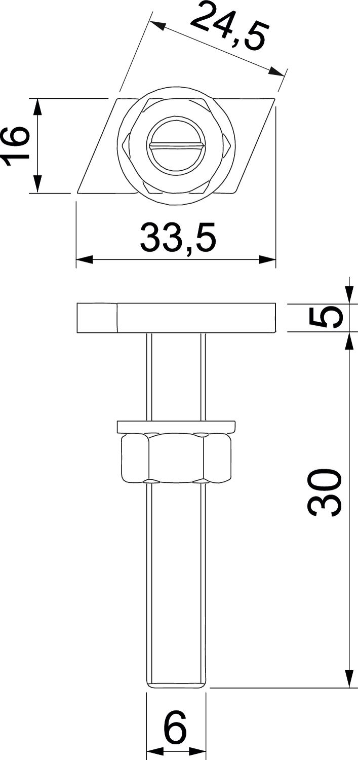 CO2 Footprint (GWP) Cradle-to-Gate 0,1267 kg CO2e / 1 Piece Dimension M6x30mm Dimension L 30 mm Height 5 mm Length 33,5 mm Material Stainless steel Suitable for mounting rail yes Surface Bright, treated Thread M 6 x 30mm Thread metric 6 Width 16 mm - All types