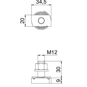 CO2 Footprint (GWP) Cradle-to-Gate 0,26 kg CO2e / 1 Piece Dimension M12x30mm Dimension H 9 mm Dimension L 30 mm Height 20 mm Length 39 mm Material Steel Suitable for mounting rail yes Surface Zinc slat Thread M12x30 Thread metric 12 Torque 25 Nm Washer Ø 24 mm Width 35 mm With nut yes - All types