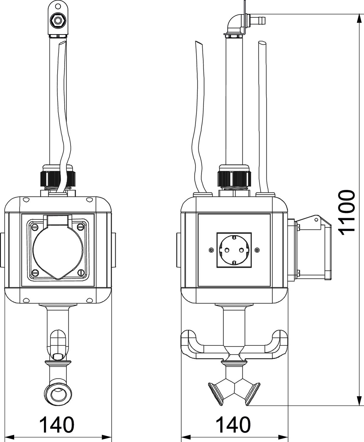 CEE socket, 16 A 1x16A5p400V CEE socket, 32 A Without CO2 Footprint (GWP) Cradle-to-Gate 5,5406 kg CO2e / 1 Piece Colour Graphite black; RAL 9011 Depth 196 mm Dimension 140x140x1100 FI protection switch Without Handling abhängbar Height 1100 mm Material Polyamide Military version no Number of CEE sockets 1 Number of compressed air connections 2 Number of SCHUKO sockets 3 Protection rating IP20 Supply/connection option Miscellaneous Width 140 mm - All types