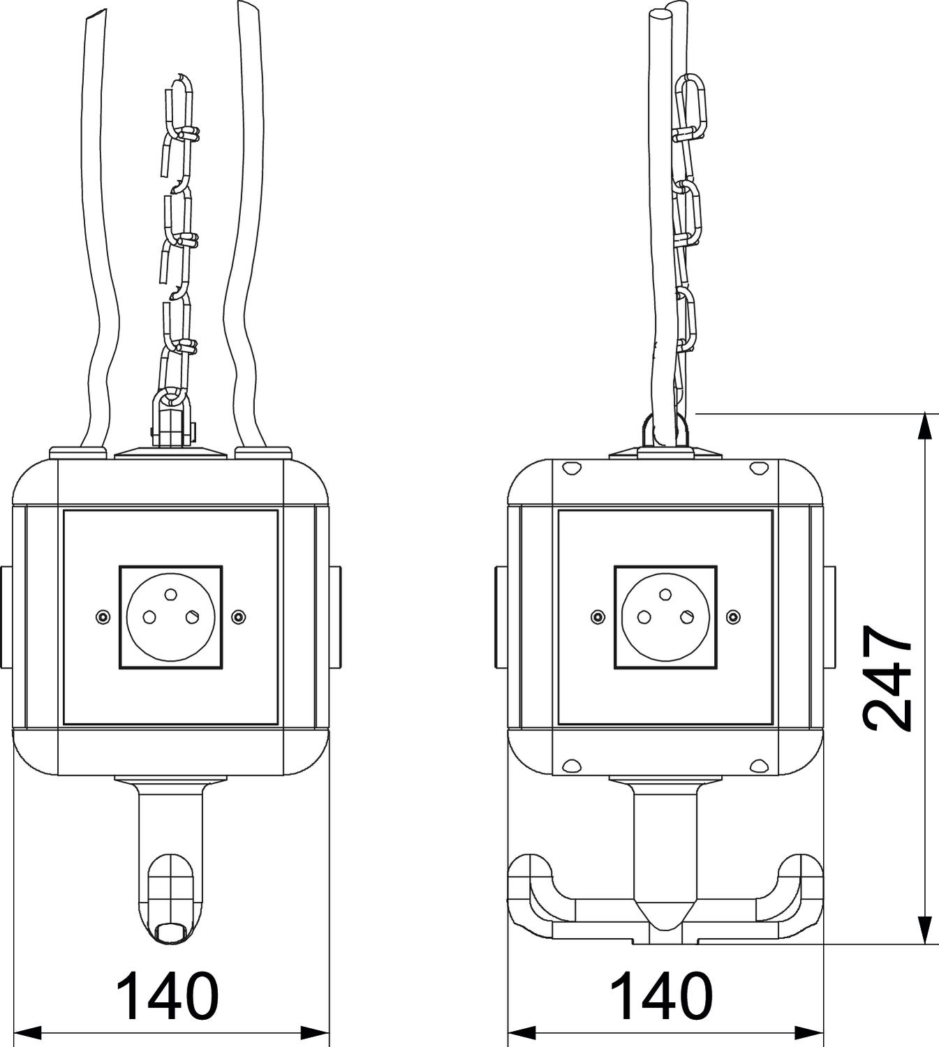 Product descriptionHousing equipped and pre-wired with suspension lug, grip hook and four cover plates.