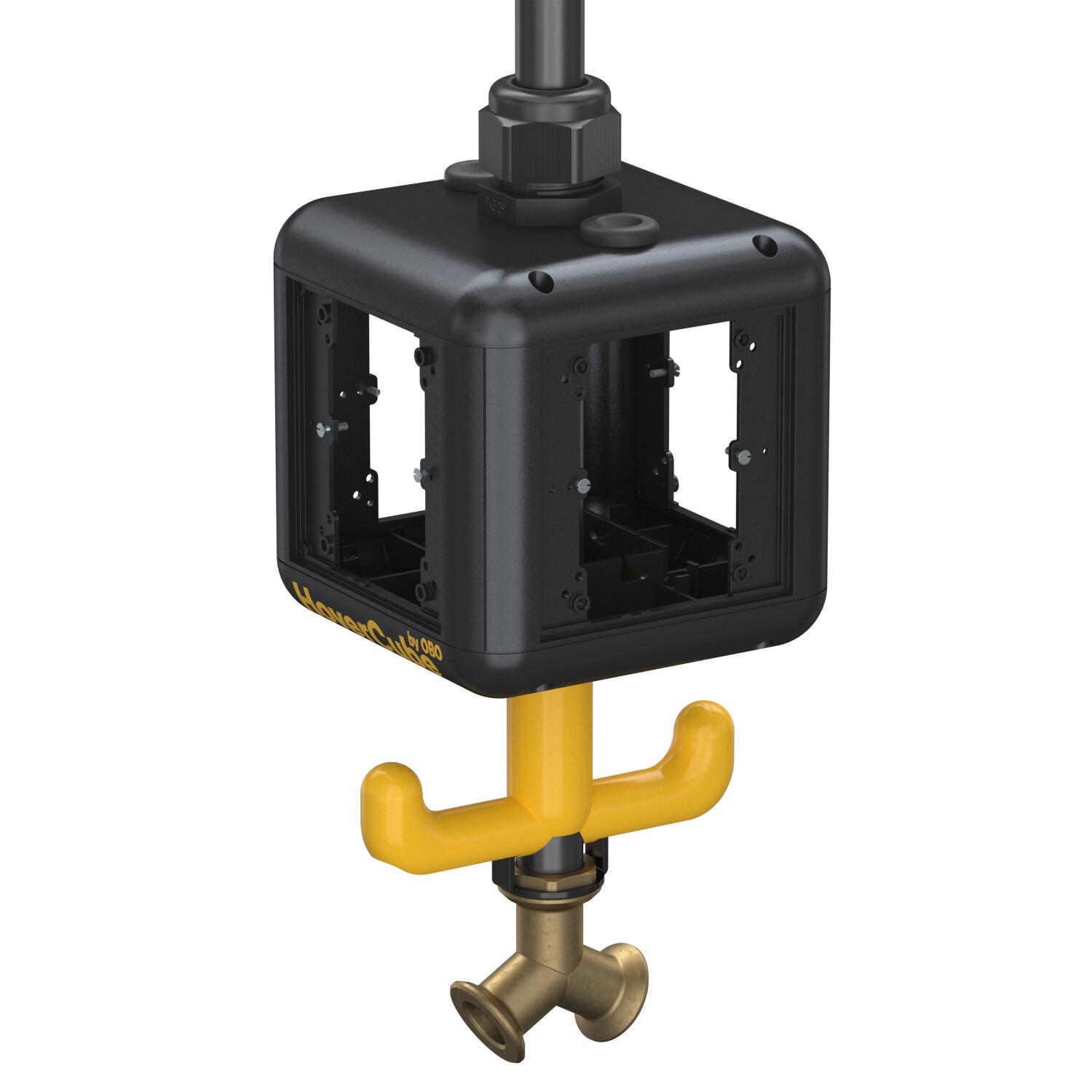 Product descriptionEmpty housing with 1 m pipe 1/2" and connection for compressed air hose 13 x 3.5 mm and 2-way distributor 1/2". With suspension lug and grip hook, for the installation of four electrical resources, with included partition. Without cover plates.