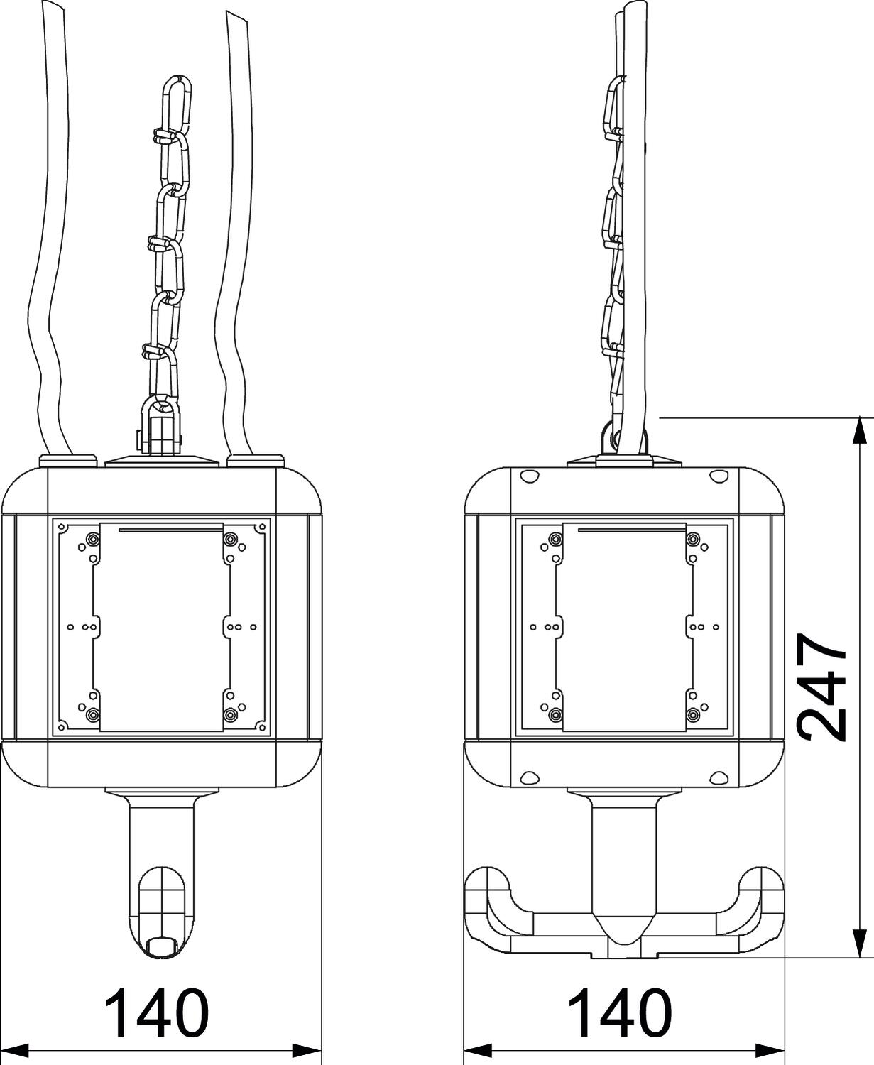 Product descriptionEmpty housing with suspension lug and grip hook, for the installation of four electrical resources, with included partition. Without cover plates.