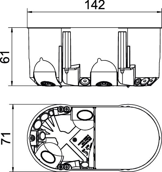 Product descriptionCavity wall electronic box with membrane entries, cover and partition, for use in cavity walls with an installation depth of at least 61 mm and a plate thickness of 5–40 mm.