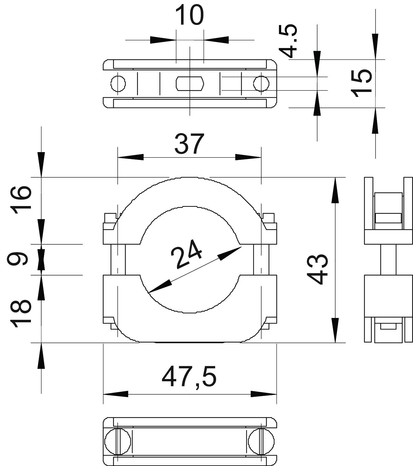 Bolt M4 x 30 Clamping range D, max. 24 mm Clamping range D, min. 17 mm CO2 Footprint (GWP) Cradle-to-Gate 0,0688 kg CO2e / 1 Piece Colour Light grey; RAL 7035 Dimension 17-24mm Dimension A 47,5 mm Dimension B 37 mm Dimension b 15 mm Dimension D 24 mm Dimension H 43 mm Dimension Ho (mm) 16 Dimension Hu (mm) 18 Dimension L 10 mm Fastening type Screw hole Halogen-free yes Material Polystyrene Number of cables/pipes 1 Plastic-covered no Suitable in fire protection area no UV-resistant no Version for Closed - All types