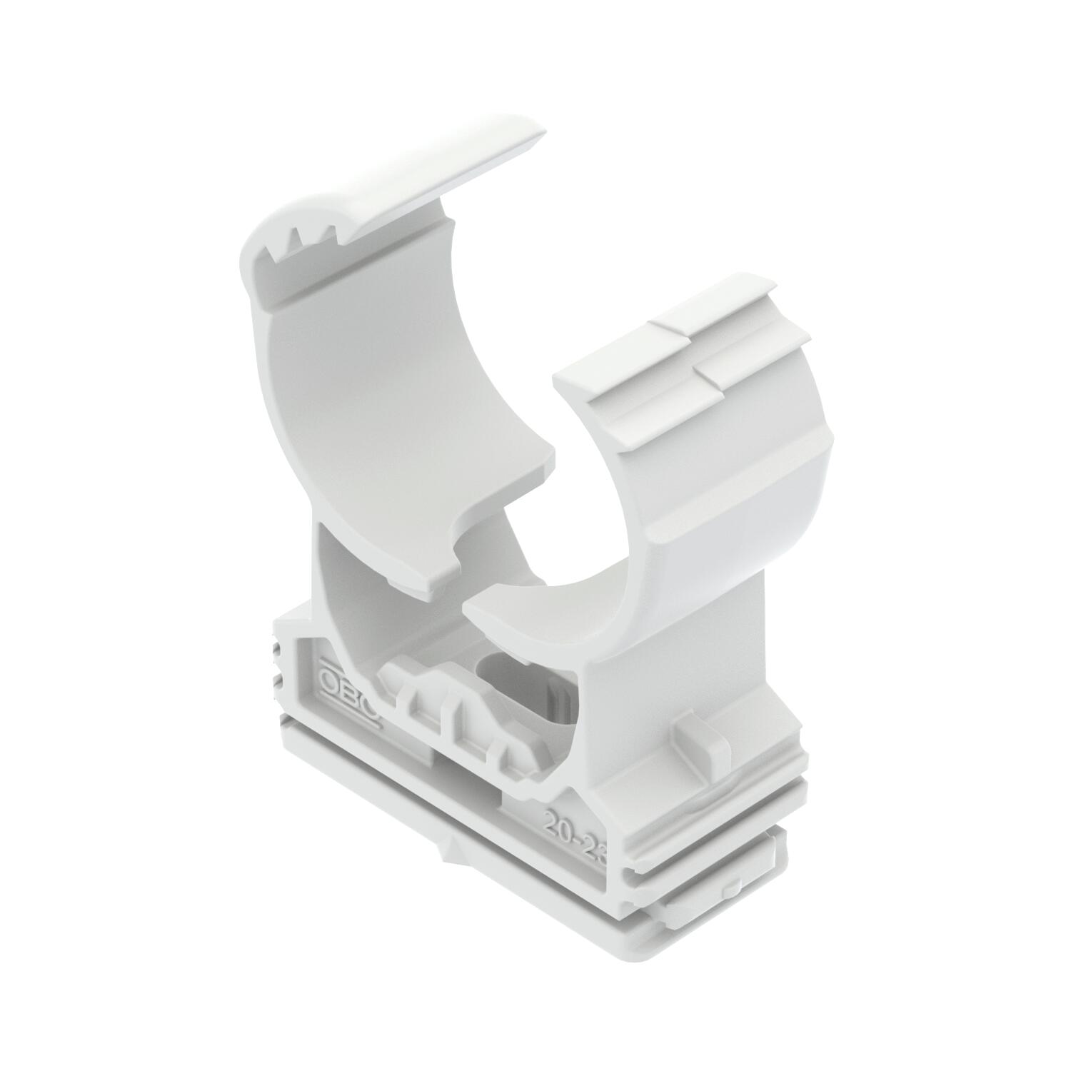 Product descriptionHighly stressable clip for accepting plastic or metal electrical and sanitary pipes as well as the electrical installation pipe Quick pipe. Universal fastening options on walls, ceilings and steel constructions, both indoors and outdoors. Flexible clamping range of several millimetres. Toolless pipe mounting. Connectable to each other to Ø 32 mm, also with the OBO Quick or Multi Quick clip. For variable distances and clip quantity mountable on a profile rail.