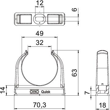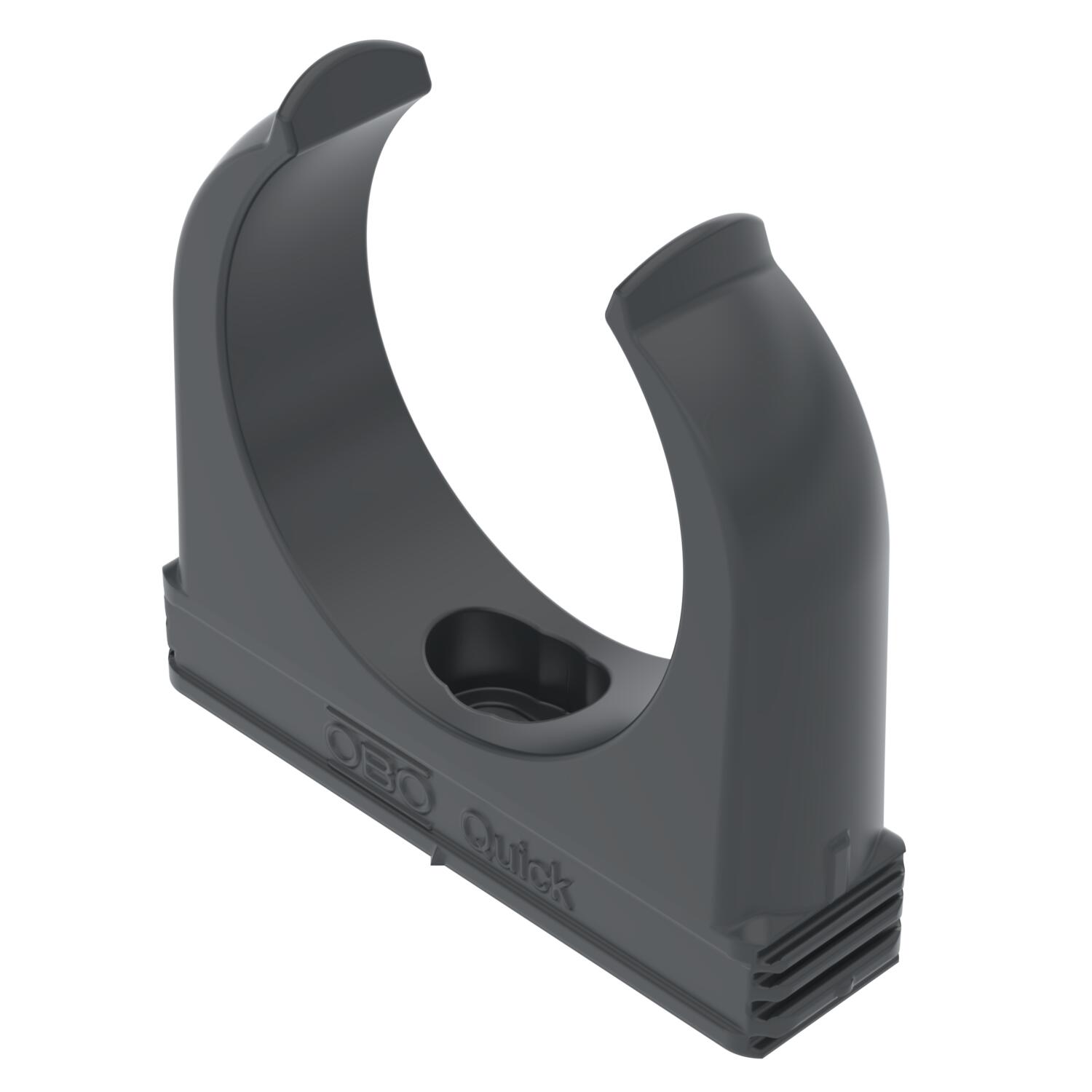 Product descriptionFlush-mounted clip to accept metric steel armoured pipes and heavy-duty insulating pipes, as well as Quick-Pipe® electrical installation pipes. Universal fastening options on walls and ceilings, both in indoor and protected outdoor areas. With slot for side alignment during mounting with wood screw or knock-in anchor. Toolless pipe mounting. Can also be arranged with OBO Multi-Quick or proQuick clip. M16 - M32 size can be screwed onto M6 thread. Recommended fastening spacing 50–60 cm, for max. extraction values F at a room temperature of 20 °C, see the table.