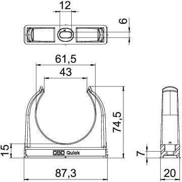Product descriptionFlame-resistant, flush-mounted clip to accept metric steel armoured pipes and heavy-duty insulating pipes, as well as Quick-Pipe® electrical installation pipes. Universal fastening options on walls and ceilings, both in indoor and protected outdoor areas. With slot for side alignment during mounting with wood screw or knock-in anchor. Toolless pipe mounting. Can also be arranged with OBO Multi-Quick or proQuick clip. M16 - M32 size can be screwed onto M6 thread. Recommended fastening spacing 50–60 cm, for max. extraction values F at a room temperature of 20 °C, see the table.