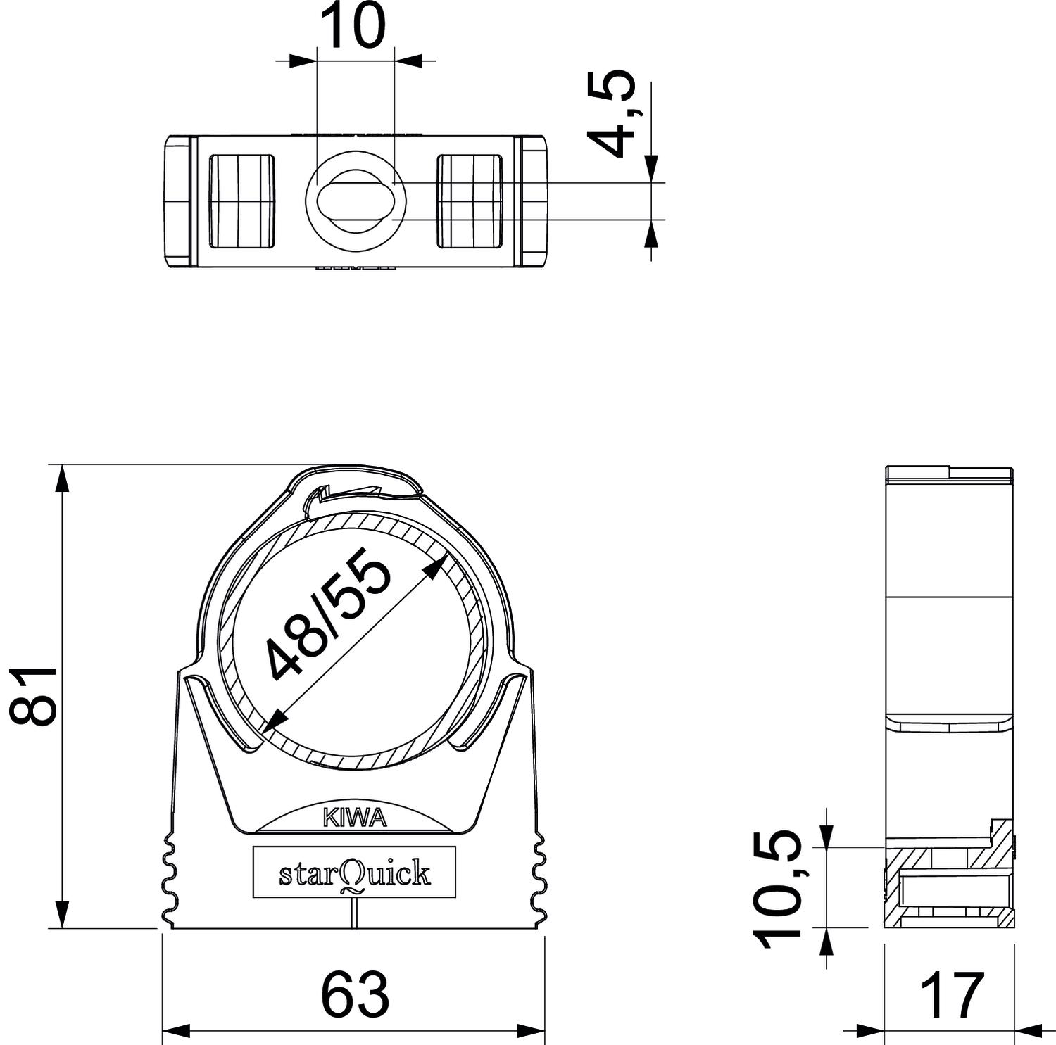 Breaking load 1,4 kN Clamping range D, max. 55 mm Clamping range D, min. 48 mm Closed yes Colour Light grey; RAL 7035 Dimension 48-55mm Dimension A 63 mm Dimension B 17 mm Dimension E 10 mm Dimension F 4,5 mm Dimension H 81 mm Dimension h 10,5 mm Expandable yes Fastening type Screw hole Flame-resistant acc. to VDE 0471/DIN 695 Part 2-1, test temperature 650°C Halogen-free yes Material Polyamide Nominal size 50-54 Number of cables/pipes 1 UV-resistant yes With inlay no - All types