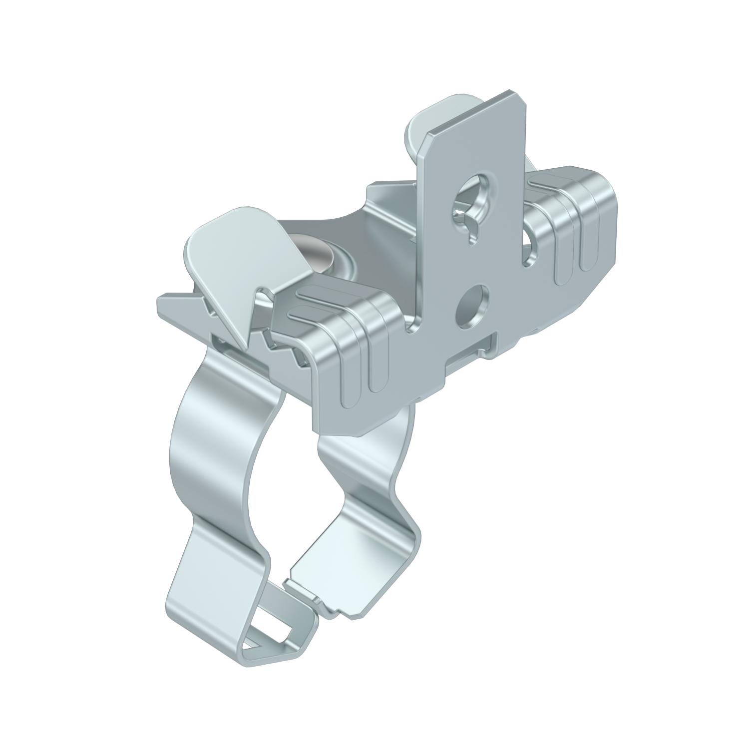Product descriptionSupport clamp for mounting pipes. Closed pipe seat at bottom. Fastening through knocking onto steel girders.