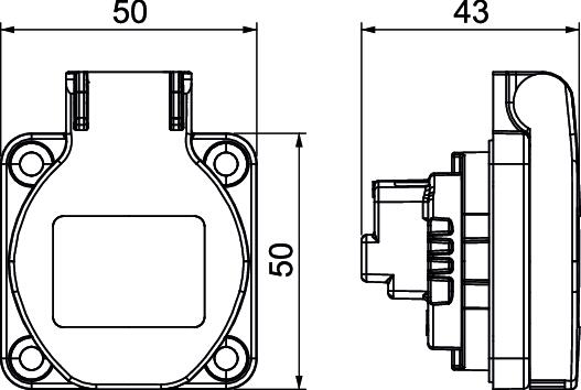Antibacterial treatment no Closable no CO2 Footprint (GWP) Cradle-to-Gate 0,042 kg CO2e / 1 Piece Colour Black Connection type Screwless terminal Dimension 50x61mm Direction of insertion Straight Ejection mechanism no Error current protection no Fastening type Fastening with bolt Flange dimension 50x50 For more difficult conditions (according to VDE) no Halogen-free no Height 39 mm Hinged cover yes IFTTT support no Labelling panel no Length 50 mm Mounting type Installation Nominal current 16 A Nominal voltage 250 V Number of modules (for modular construction) 1 Number of poles 2 Number of units 1 Protection rating IP44 Rotated central insert no Special power supply Without special power supply Surge protection no Transparent no Warning light no Width 50 mm With fine-wire fuse no With functional lighting no With on/off switch no With orientation lighting no - All types