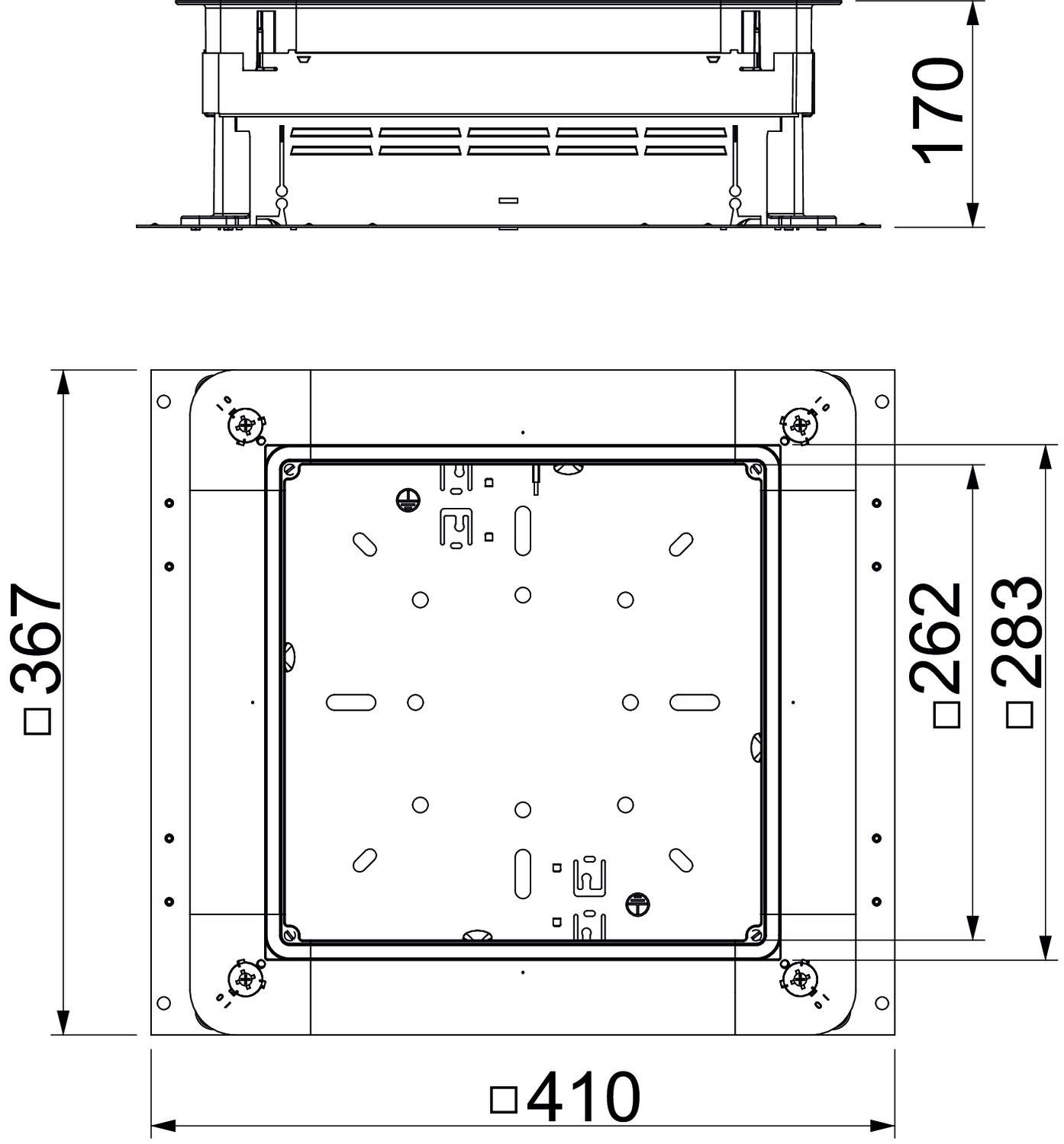 Product descriptionUnderfloor junction and branch box for screed-covered underfloor installation ducts with sheet steel side walls. To mount installation units in the mounting lid (to be ordered separately). Height can be infinitely adjusted to the nominal screed height (rapid adjustment possible) and the screed can be worked flush to the screed scraping edge. With noise decoupling option after screed laying and can be used with system accessories, also for heavy-duty application.