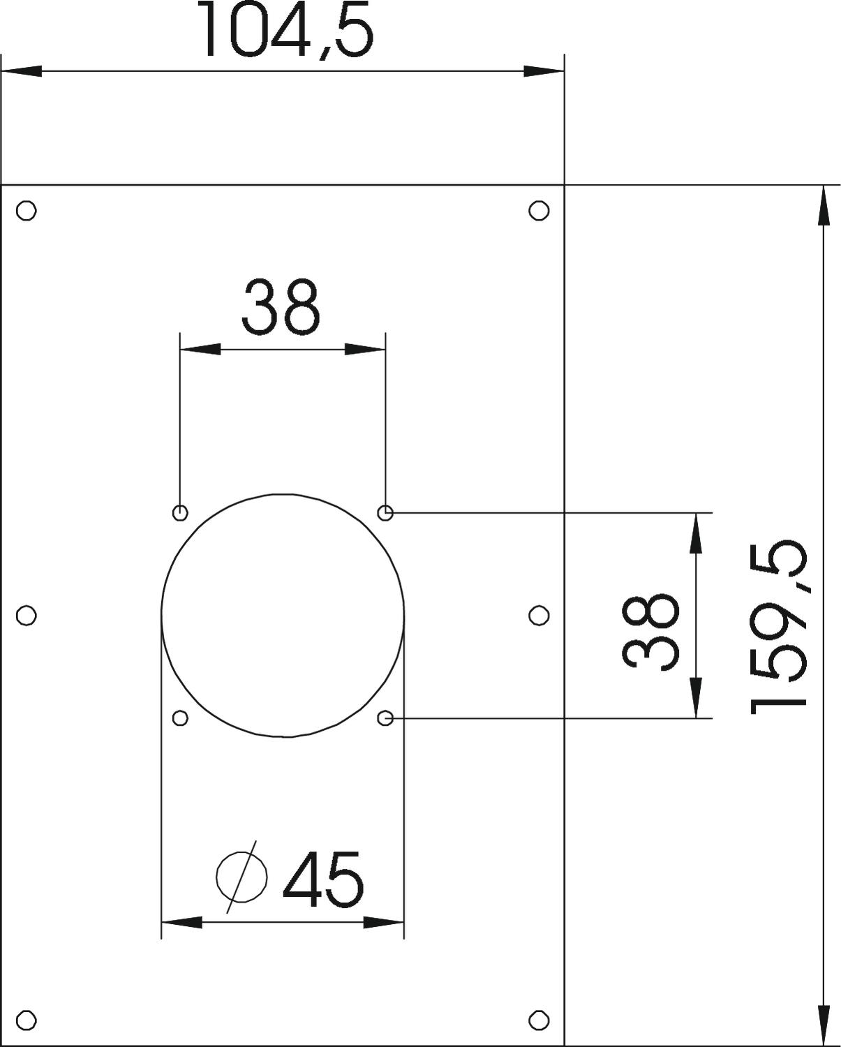 Product descriptionCover plate with opening for the installation of a socket with 38 x 38 mm fastening system.