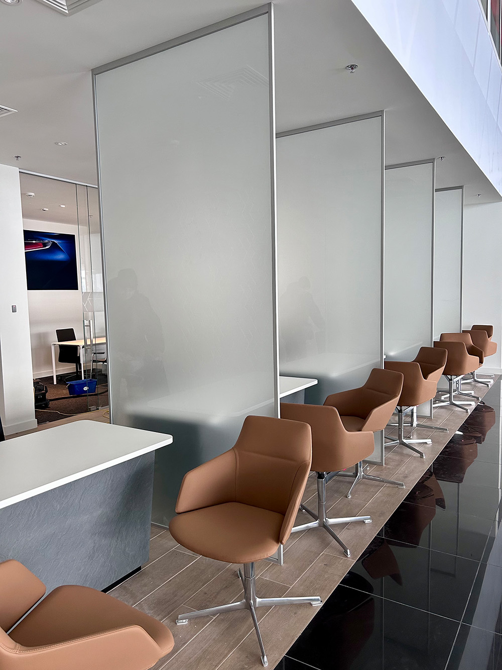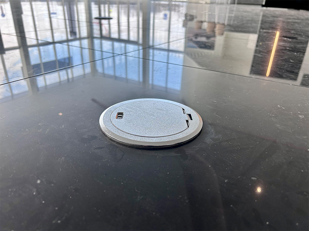 Das Modell GES R2 Cr wurde im Hauptausstellungsbereich im Erdgeschoss installiert. Die kompakten, zugleich aber robusten Systeme, ermöglichen einen flexiblen Zugang zu Energie und Daten direkt am Fahrzeug oder Beratungsstandpunkt.