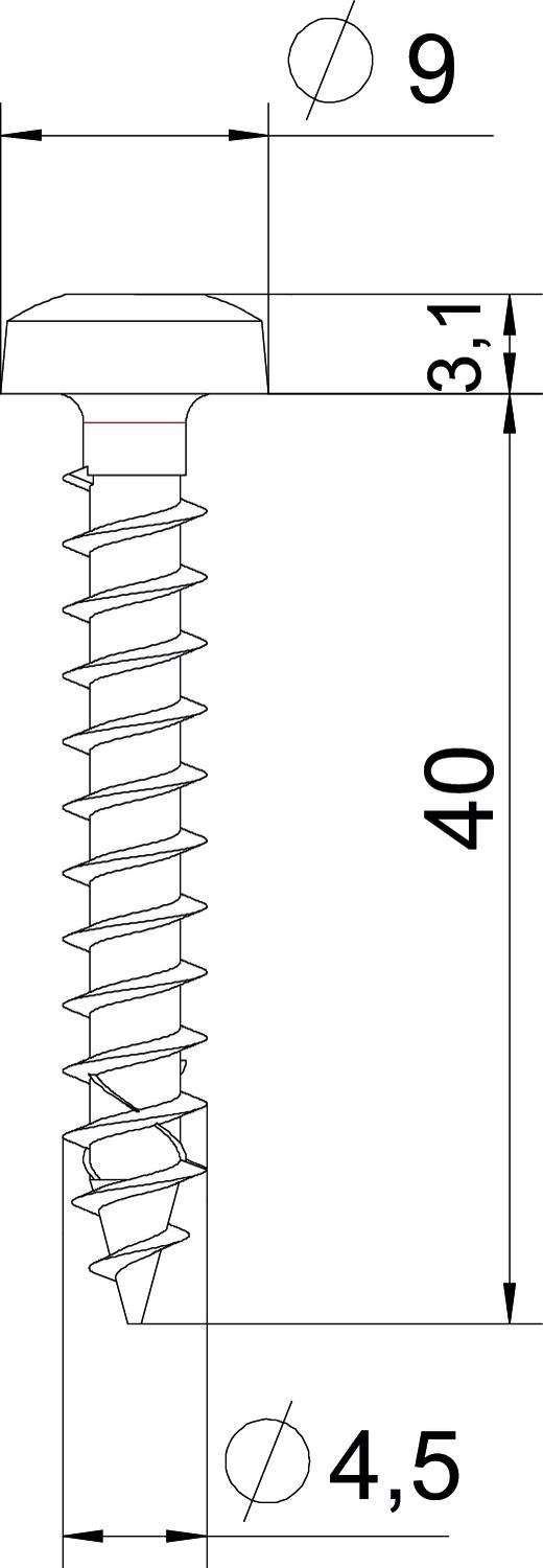Винтовая система Torx Двойной нет Диаметр головки 9 mm Длина 40 mm Закаленная поверхность нет Материал Нержавеющая сталь Поверхность без обработки, дообработанный Размер TX 20 Размер 4,5x40mm Размер D 4,5 mm Размер L 40 mm Форма головки Полукруглая головка - Все виды