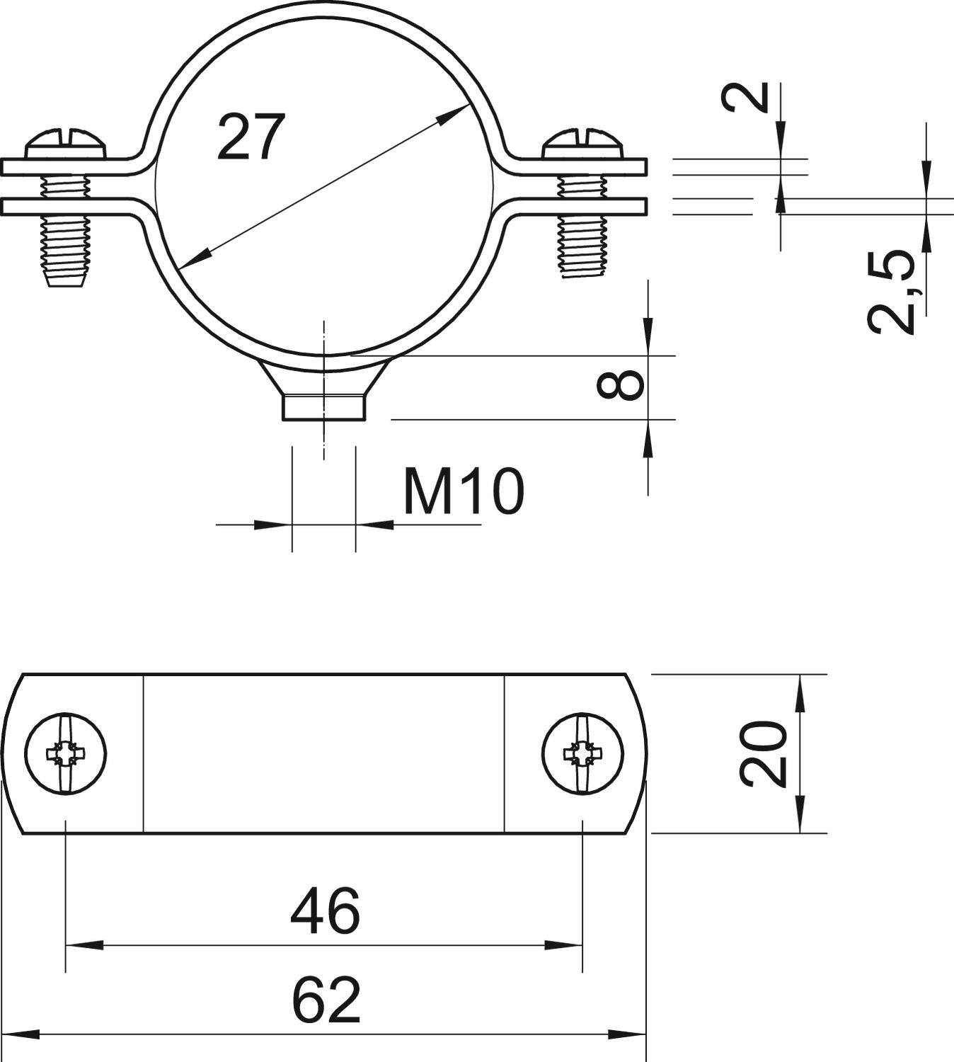 В пластмассовой оболочке нет Вид крепления отверстие под винт Винт M6 x 20 Диапазон зажима D макс. 27 mm Диапазон зажима D мин. 24,5 mm Длина 62 mm для диаметра 27 Для труб диаметром M25 Исполнение Закрытый Материал Сталь Не содержит галогенов нет Поверхность Горячее цинкование методом погружения Подходит для зоны противопожарной безопасности нет Размер 3/4" Размер 3/4" Размер B 46 mm Размер t1 (мм) 2,5 Размер x 2,5 mm Размер отверстий M10 Размер A 62 mm Размер L 62 mm Размер t 2 mm Резьба M10 Углеродный след CO2 (GWP) от колыбели до ворот 0,146 кг CO2e / 1 Шт. Устойчив к УФ да Ширина 20 mm - Все виды