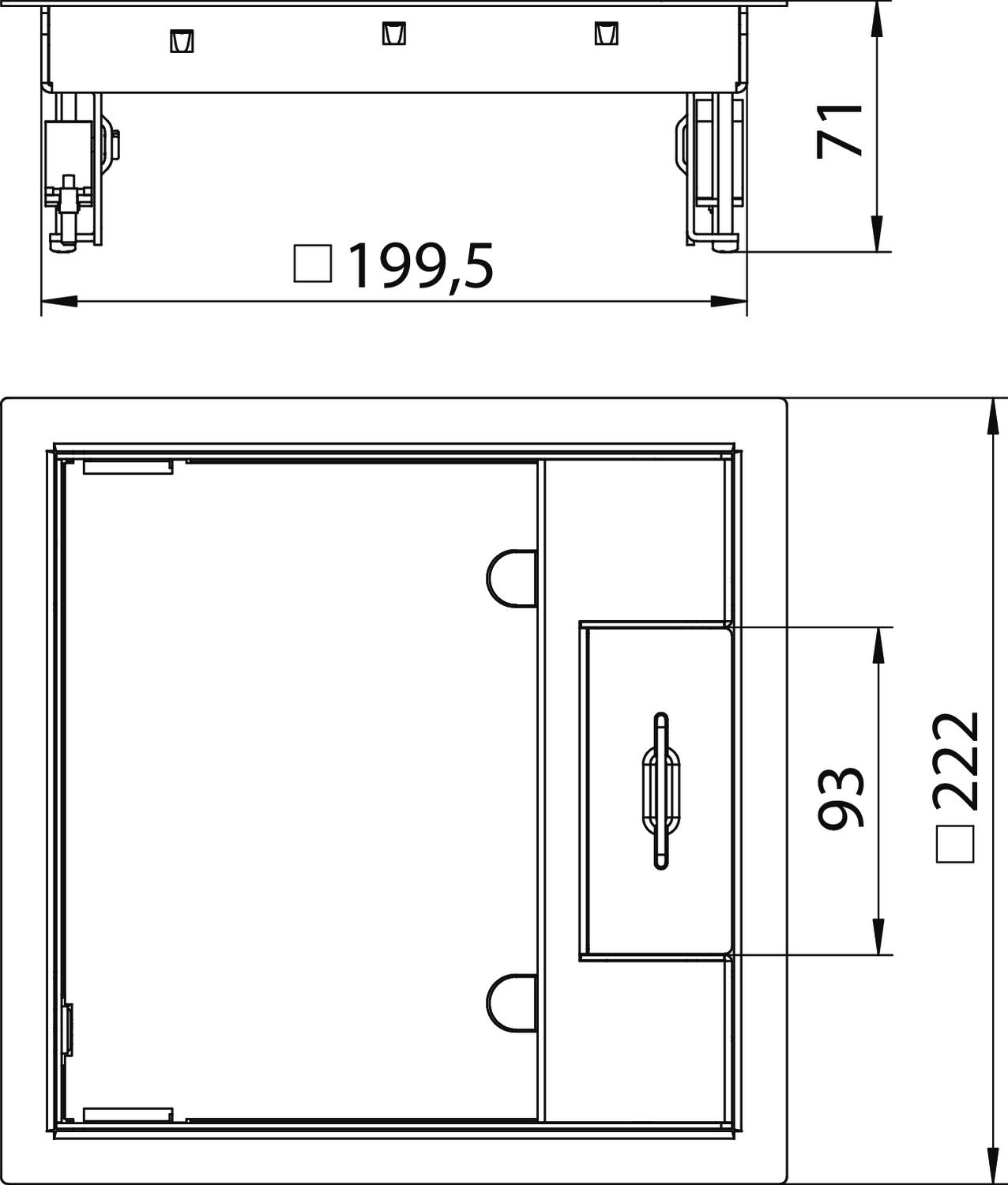 Электромонтажный лючок GES2, с ручкой, 1-секционный, для установки монтажной коробки MT4. Могут быть установлены 2 накладки APMT2.