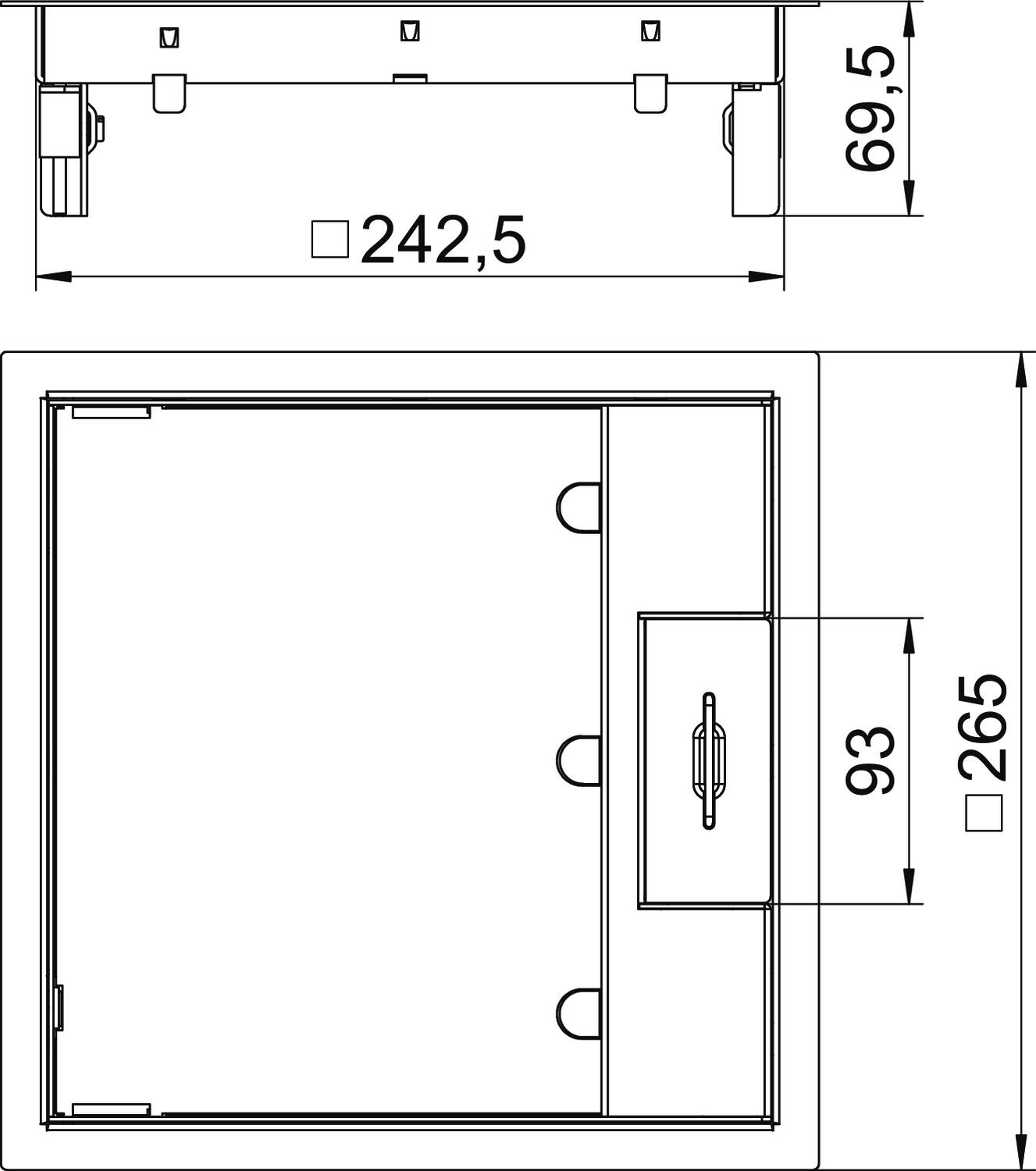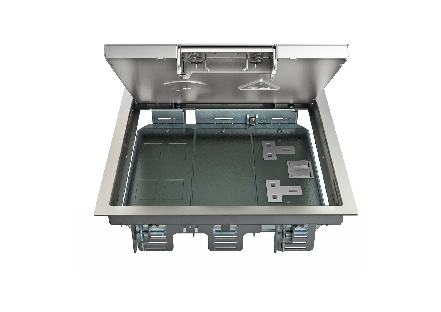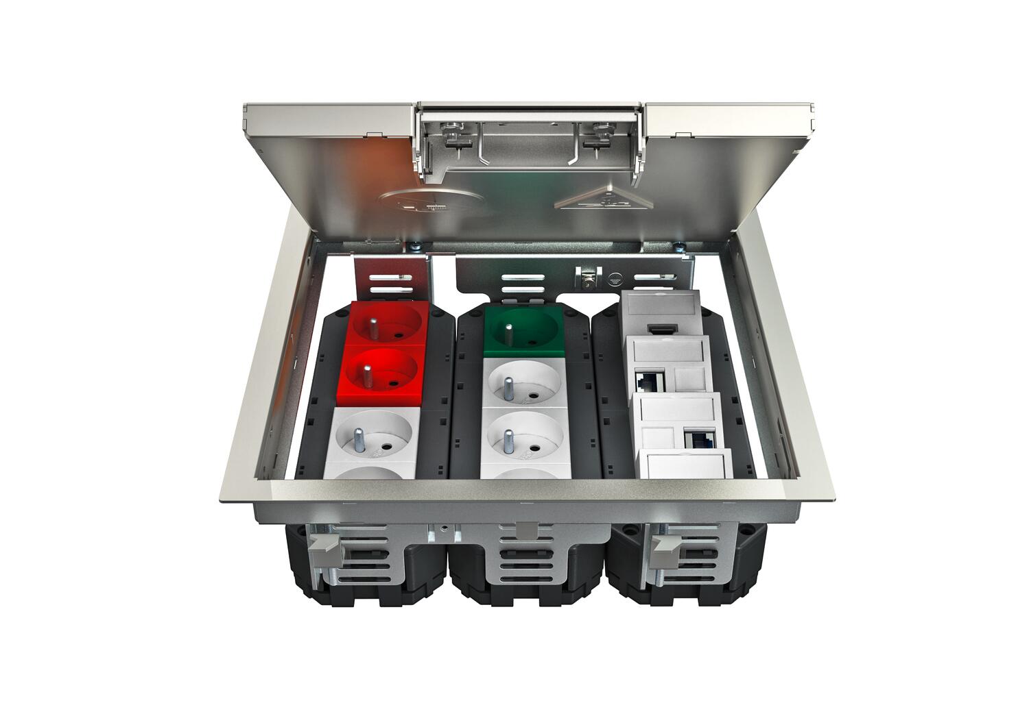 Электромонтажный лючок с ручкой, 3-секционный, для установки монтажной коробки MT9. Могут быть установлены 3 накладки APMT5.