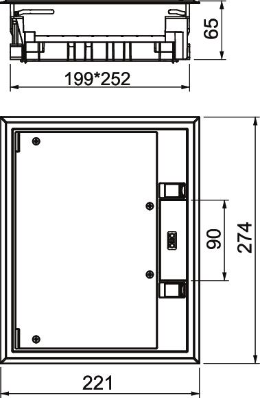 В объем поставки входят: лючок номинального размера 6 с универсальным крепежным углом и две универсальные рамки для 3 встроенных электроустановочных изделий Modul 45®.