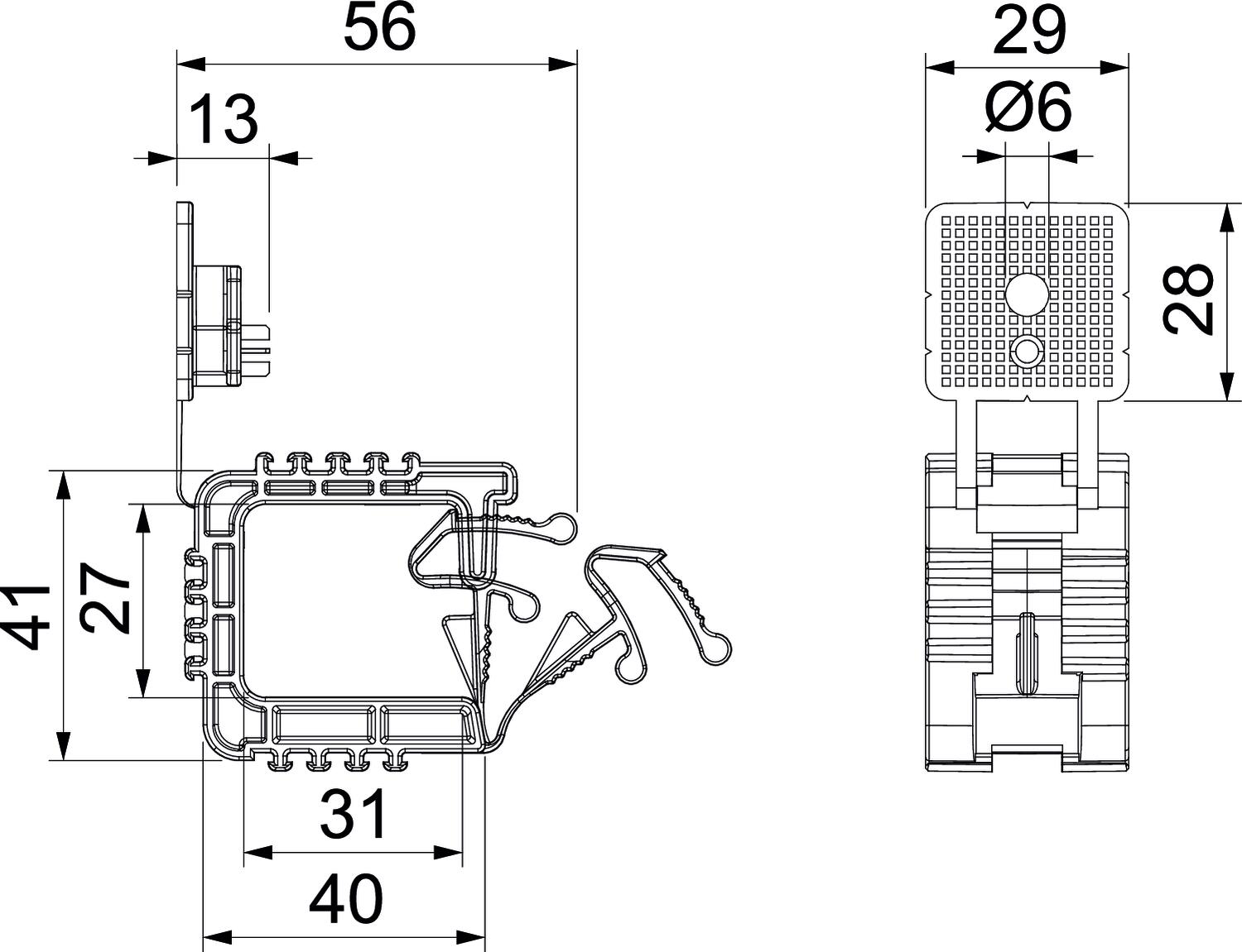 Описание продуктаГрупповое крепление захват с крепежными отверстиями Ø 6 мм для монтажа кабеля, подходит для настенного и потолочного монтажа. Запрессованный крепежный элемент можно закреплять с помощью забивного дюбеля или пневмоустройства для забивания гвоздей. Рекомендованное расстояние при максимальном заполнении 250 - 400 мм.