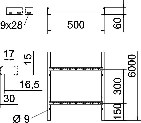 Описание продуктаКабельный лоток лестничного типа c боковыми стенками высотой 60 мм, с приваренными, открытыми вверх перекладинами C30. Загнутая боковая стенка для усиления конструкции и защиты кромок. Крепление на кронштейн производится с помощью фиксаторов типа LKS 40. Размер шлица в поперечине составляет 16,5 мм, подходящий тип зажимной скобы 2056.